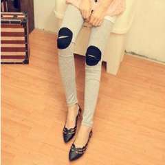 秋冬新款膝盖开口笑打底裤\修身裤-灰色