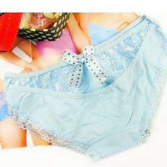 全棉蕾丝无痕镂空蝴蝶结性感公主内裤\女士三角裤-湖蓝色