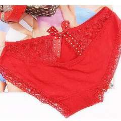 全棉蕾丝无痕镂空蝴蝶结性感公主内裤\女士三角裤-大红色