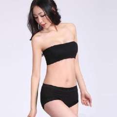 时尚百搭款蕾丝花边带胸垫两穿吊带裹胸\抹胸-黑色(471)