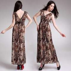 2012新款双V领 | 收腰 | 拖地长裙 | 波西米亚豹纹长裙