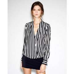 修身黑白条纹套头帅气长袖宽松女衬衫