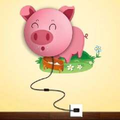 DIY花颜墙纸壁灯\儿童房温馨趣味墙纸灯--粉红猪(HY002)