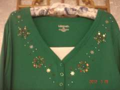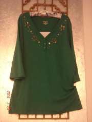 绿色超大码串珠亮片上衣1X\美:16\英:18-20\欧: 42-44