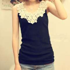 2012新款韩版层层蕾丝打底衫\三层花边背心-黑色