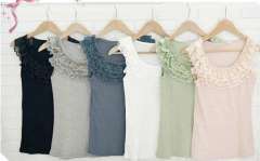 2012新款韩版层层蕾丝打底衫\三层花边背心-灰色