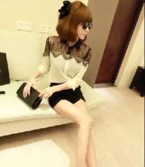 2012最新款蕾丝钩花领\镂空拼接\螺纹棉打底衫 | 黑色