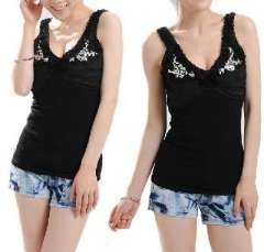2012春夏装新款蕾丝亮片小背心\深V领木耳花边性感修身吊带打底衫-黑色