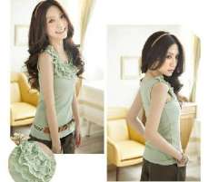 2012新款韩版层层蕾丝打底衫\三层花边背心-绿色