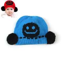 秋冬款韩版婴儿帽\双球笑脸帽\儿童帽-蓝色