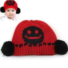 秋冬款韩版婴儿帽\双球笑脸帽\儿童帽-大红色