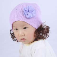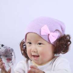 双蝴蝶结假发帽 | 韩版儿童帽子 | 秋冬婴儿潮帽 | 紫色
