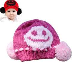 秋冬款韩版婴儿帽\双球笑脸帽\儿童帽-玫红