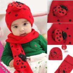 甲壳虫秋冬保暖婴儿帽\围巾两件套 | 红色