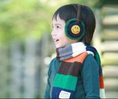 新款彩条大毛球保暖围巾\儿童秋冬围巾-绿色