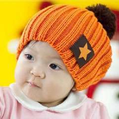 韩国最火爆时尚糖果色五星贴标毛线帽\宝宝帽-橘色