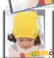 双蝴蝶结假发帽 | 韩版儿童帽子 | 秋冬婴儿潮帽 | 黄色