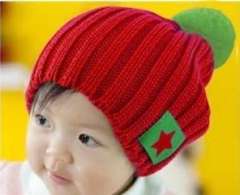 韩国最火爆时尚糖果色五星贴标毛线帽\宝宝帽-大红色