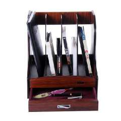 商务办公高档木制带抽屉四格文件收纳盒文件架