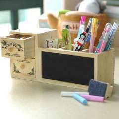 创意原木黑板笔筒\双层抽屉
