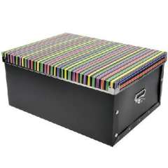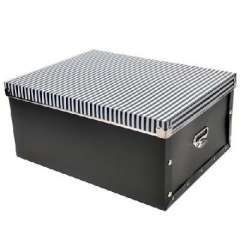 大号多功能金属边环保PP有盖收纳盒\整理盒-黑色彩条