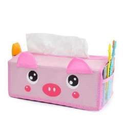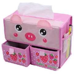 开馨宝可爱动物双抽屉收纳盒\纸巾盒-粉色小猪