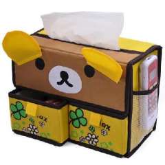 开馨宝可爱动物双抽屉收纳盒\纸巾盒-棕色小熊