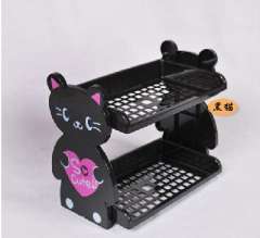 卡通动物双层置物架 | 塑料收纳架 | 黑猫