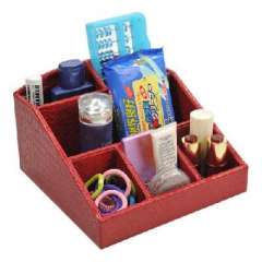 开馨宝鳄鱼纹化妆品收纳盒\桌面收纳整理盒-大红色