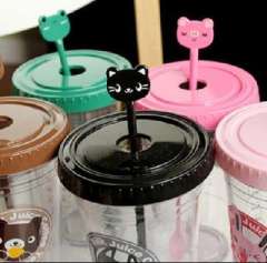 大号卡通带勺水杯\透明杯 | 类型随机
