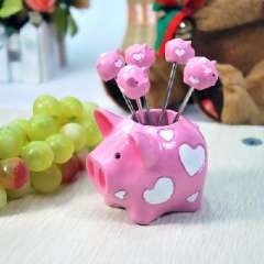 粉色爱心猪水果叉