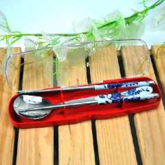 韩版文具盒式不锈钢印花餐具两件套