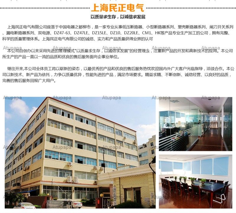 Shanghai Minzheng Electric Co., Ltd. is a professional manufacturer of low voltage circuit breakers, miniature circuit breakers, molded case circuit breakers, switch series, leakage circuit breakers, dual power supplies, DZ47-63, DZ47LE, DZ15LE, DZ10, DZ20LE, CM1, HK And other products specializing in the production and processing company, has a complete and scientific quality management system. Shanghai Electric Co., Ltd. is the integrity, strength and quality of products recognized by the industry.Welcome friends from all walks of life come to visit, guidance and business negotiations.