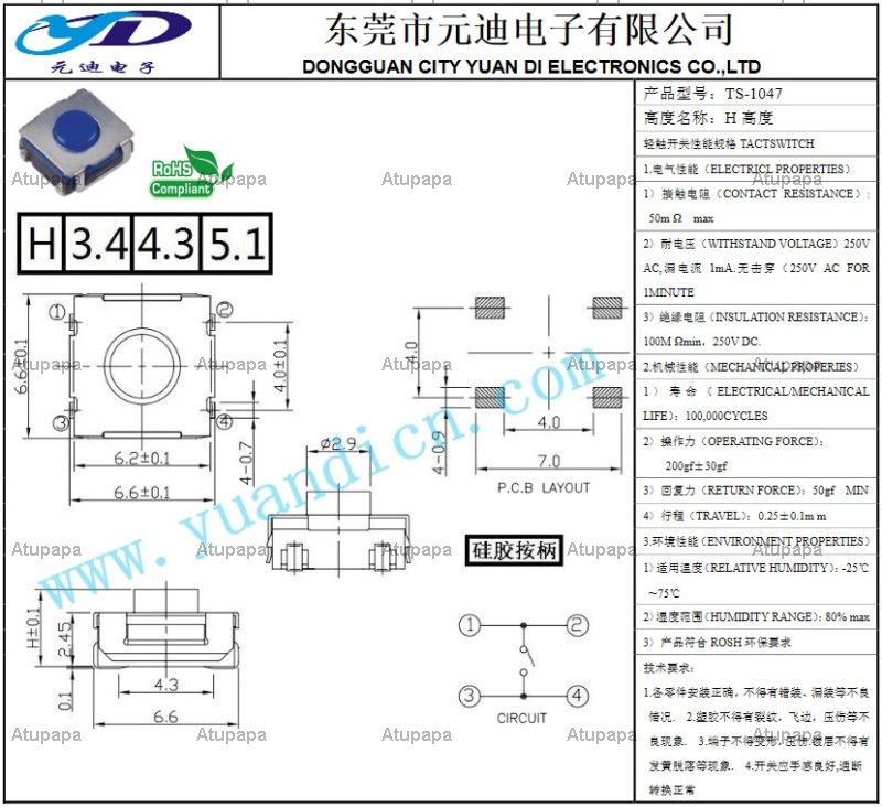 Dongguan YuanDi Electronics Co., Ltd. is a Taiwan-based sales and operation center in mainland China, specializing in touch switches, multi-function switches, key switches, micro switches, toggle switches, detection switches, headphone jack , DC socket, USB and other R & D, production and sales of electronic technology enterprises, products widely used in automotive electronics, digital products, communications equipment, speaker equipment, household appliances and electronic equipment. Taiwan Yuan Di Electronic Technology Co., A number of leading international peer independent intellectual property rights, has repeatedly access to electronic components solutions provider award. Company to facilitate the delivery of goods in the Pearl River Delta region, set up in Dongguan Yuan Di Electronics Co., Ltd., Quanzhou in China Torch Industrial Park Also has production R & D manufacturing team The company has advanced manufacturing equipment and testing equipment, with domestic and foreign experts in the research and development and quality control center, a highly qualified technical team, the company implemented a scientific management methods and ISO9001 quality management system to ensure that Companies to excellence in quality, good service, very competitive prices to win the trust of customers! Companies adhering to: innovation, credibility, service, quality 'management philosophy, pay close attention to product quality, positive innovation, enterprises into a strong life and Soul. Committed to become China's leading, world-class supplier of electronic components solutions.