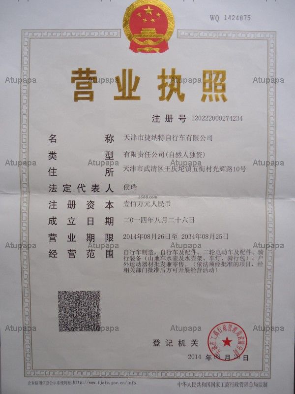 Tianjin Jie Nate Bicycle Co., Ltd. is mainly engaged in folding bike, dead coaster, mountain bike bike, approved by the national industrial and commercial department registration, Tianjin Jie Nate Bicycle Co., Ltd. has a variety of bike investment agency qualifications. Co., Ltd. Tianjin high-quality product quality, broad market prospects, generous agent treatment, a strong agent advantage, so that your venture investment is no longer difficult. Tianjin Jie Nate Bicycle Co., Ltd. sincerely welcome you to visit and inspected the field .