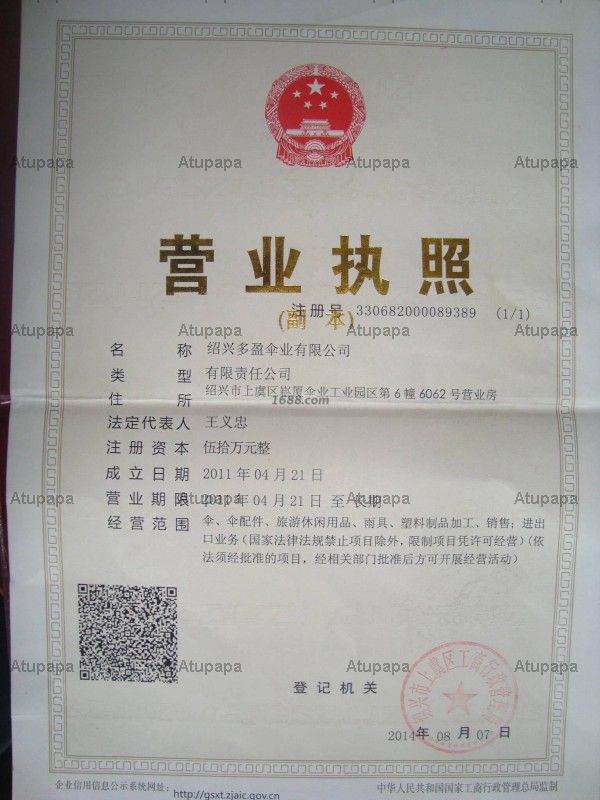 | Address | Shaoxing, Zhejiang, China Shangyu District Song Ha Umbrella Industrial Park, No. 6, Room 6062 business (use navigation at the top) |