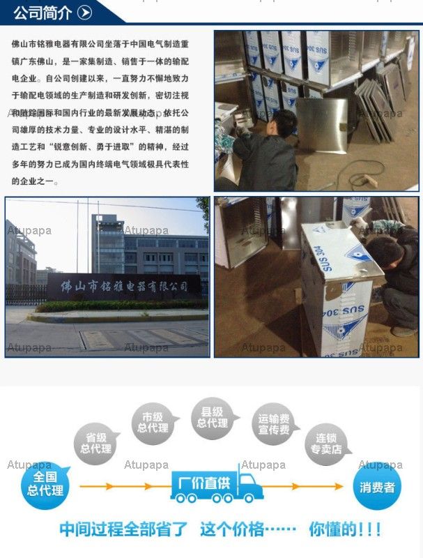 Foshan Mingya Electric Appliance Co., Ltd. is a professional manufacturer of distribution box, meter box, distribution cabinet, distribution box and other electrical products. It is an excellent distribution box manufacturer, power distribution cabinet manufacturer and meter box manufacturer in Guangdong. Has been relying on the company's strong technical force, professional design, superb manufacturing process and 'keen on innovation, the courage to forge ahead' the spirit, after years of effort has become the field of electrical terminal very representative of one of the enterprises. Electrical appliances have been adhering to the 'safe electrician pilot' business development vision, adhere to the 'rigorous truth-seeking, integrity dedicated' work style; take the market, brand, international road, the ultimate introduction of domestic and foreign senior professionals, technology and advanced Management model, for the Ming Ya Electric Co., Ltd. of the terminal areas of deep plowing electrical power to provide an endless stream of support.