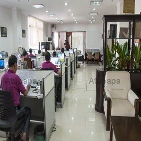 Production equipment have advanced person one hundred win timber steam dry the apparatus, Belgium accurate pieces of machine of platform pushed away, horse rotate gong machine, create water chestnut give material machine, cut leather machine, hot press, grinder, etc. Form a complete set professional machine-building facility at a high speed. Set up 25000 square meters of factory building by oneself, technical force is rich. The staff are more than 300, produce more than 600 sets of star-rated hotel rooms in the moon. From designing to production, after-sale service, the whole journey is complete