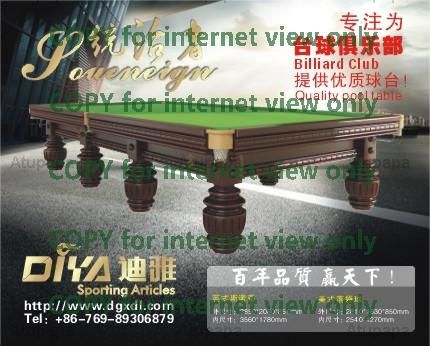 Sports goods factory in Dongguan Changping Diego is located is known as ' Jing-JIU first town ' reputation, Changping town, Dongguan, adjacent to the railway station 10 Minutes car drive. we is set design, research, production, sales British type, American, French high-end billiards table and table tennis table, basketball frame, Mahjong table mainly of professional sports supplies. we has themselves of brand products, and agent various brand billiards accessories, products raw materials selection quality of imports wood, quality Taiwan does, upscale ball rod, after strictly of technology processing, guarantee products quality of long-term stability sexual and durable sexual, let you taste to billiards movement of unique charm.
