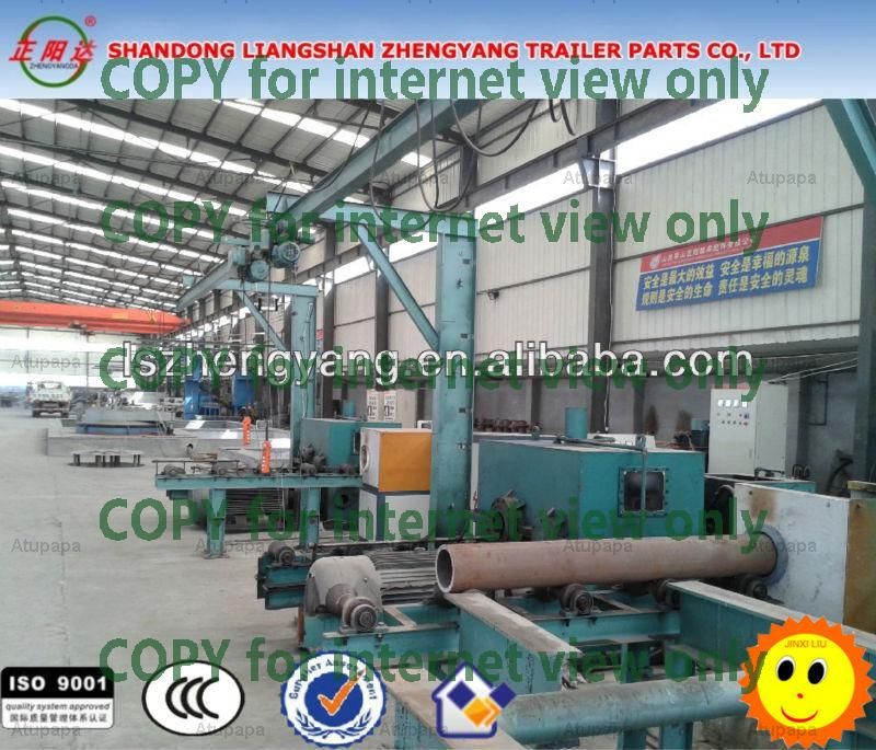 Shandong LiangshanZhengyang Trailer Parts CO. , LTD is a design, manufacturing and sales ofintergrated enterprise. The company is located in the famous trailer base-Liangshan, JiningAirport South, West of Beijing –Kowloon Railway. The 220 National Highway runsthrough territory, and only takes two minutes from jihe highway Liangshan exitto us, so well-developed transport, transport facilitation. Zhengyang mainproducts are semi-trailer, axle assembly, suspension assembly, king pin, landinggear, air tank, brake cyliner and so on.