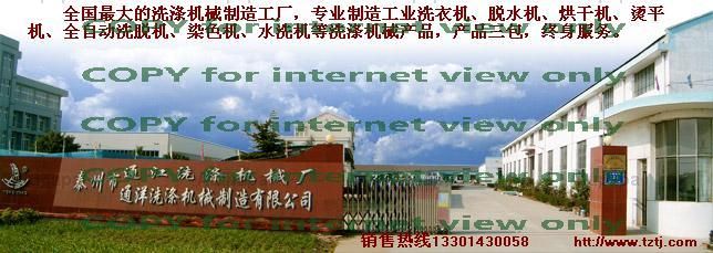 Taizhou Tongyang Washing Machinery Manufacturing Co. , Ltd. , Taizhou Tongjiang washing machine factory, Jiangsu province is the largest, most complete equipment, specializing in the manufacture of clothing and fabric washing machine and hotel / hotel / hospital laundry equipment of the professional manufacturers, factory direct sales, a full set of equipment offers. Hotline 13301430058.