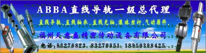 Providence in Fuzhou Sheng precision transmission equipment limited is the Taiwan ABBA authorized General agent of Fuzhou, is required for a professional Automation Accessories linear Guide, ball screw, linear bearings, linear shaft, hollow shaft, screw support, coupling, drag chains, low voltage electric appliance and so on. The company agents Taiwan ABBA linear guides, operating Taiwan HIWIN linear guides, Taiwan CPC precision micro-Guide, Korea SBC linear guides, Japan THK linear guides. After more than 10 years of sustained development, apart from your peers become a leader.