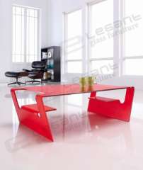 Red Glass Coffee Table, Bending Glass Side Table CB212-R -