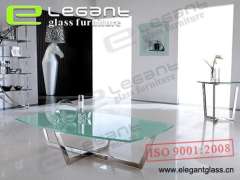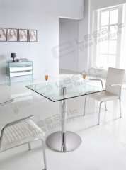 Simple Clear Tempered Glass Table on Polished Stainless Steel -