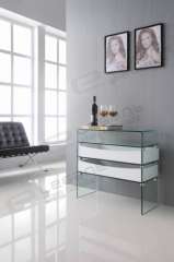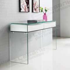 Clear Bent Glass Console Table with 2 High Gloss MDF Drawers -