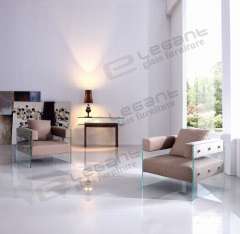 15mm Thickness Tempered Glass Sofa with Soft Fabric Seat -