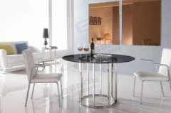 Round Grey Glass Table, Stainless Steel Base Table Ca822g -