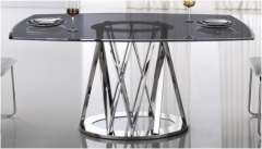Tempered Grey Glass + Stainless Steel Table S106 -