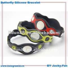 Fashion ! silicone bracelet \wristband with ion and hologram label for gift1.6 USD -